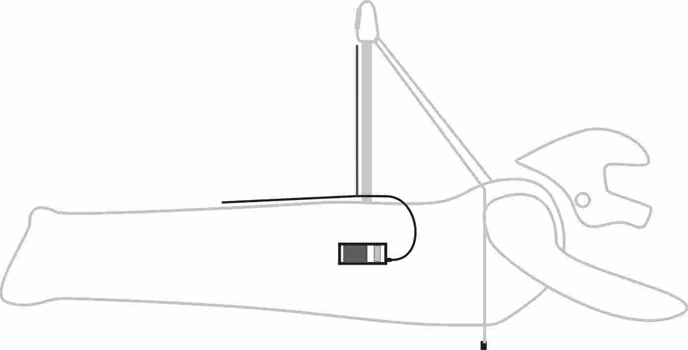 Strahler über die starre Rückenplatte hinaus, so wird der überstehende Teil mit einem Textilgummi verklebt und der Gummi innen ins Fußteil genäht: Im Flug ist der innenliegende Strahler dadurch stets gestreckt. Das Kabel mit dem Antennenstec